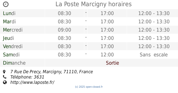 It is also possible to : Modifier ces HEURES D'OUVERTURE of Branche La Poste Dans Marcigny, 7 Rue De Precy,